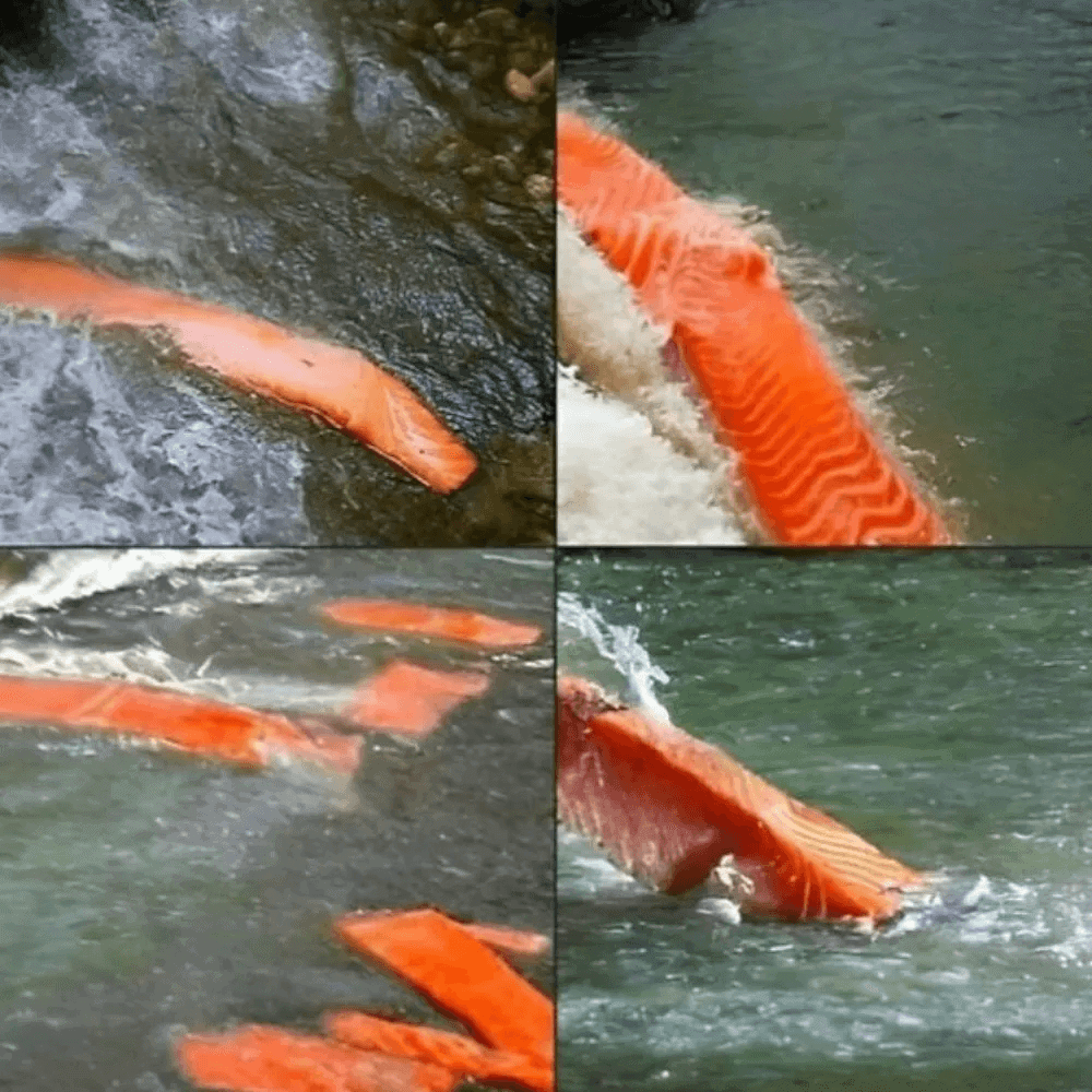 However, in this case, AI took the request a bit too literally, resulting in an image that appears as if dinner is attempting to escape down the river. While it may not be what was initially intended, it did provide a humorous moment.