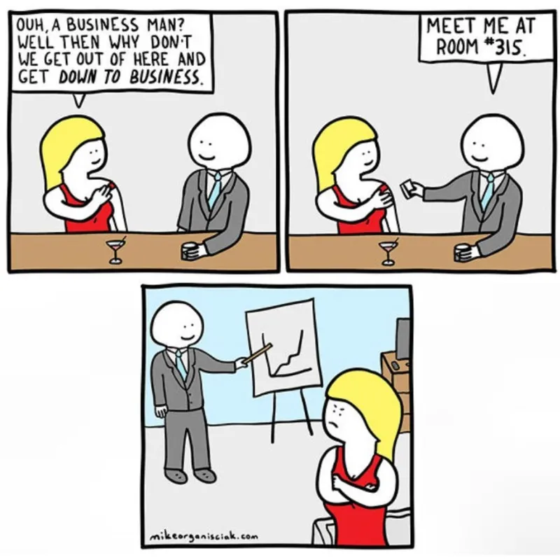 Business trips have a certain stereotype: suitcases, stale hotel rooms, and… questionable encounters in lobbies and lounges. This comic seems to start down that familiar path—until it flips the script.