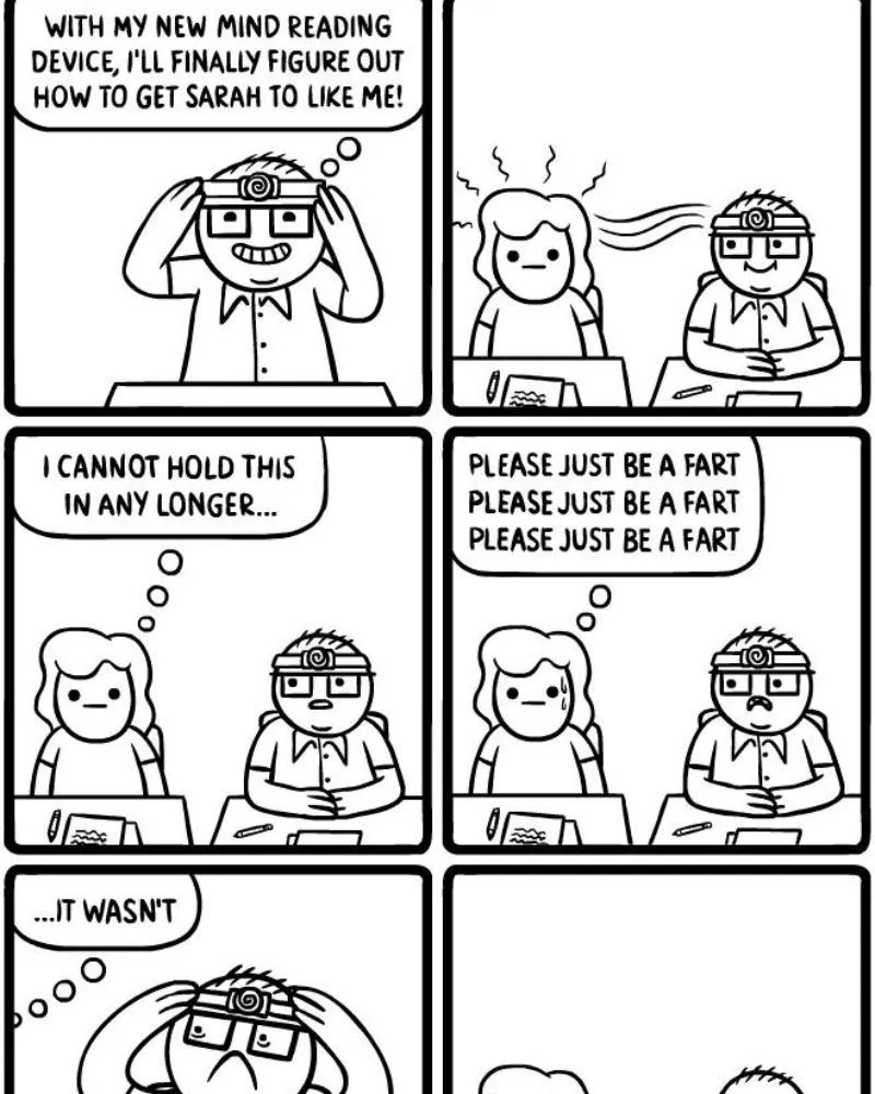 But, as this cartoonist points out, knowing someone’s thoughts might be more curse than blessing. Not everything in our heads is pretty—or kind. In fact, hearing your crush’s unfiltered thoughts might be the fastest way to kill a fantasy. It’s a hilarious warning that some secrets are better left unknown, even if the hat does look cool.