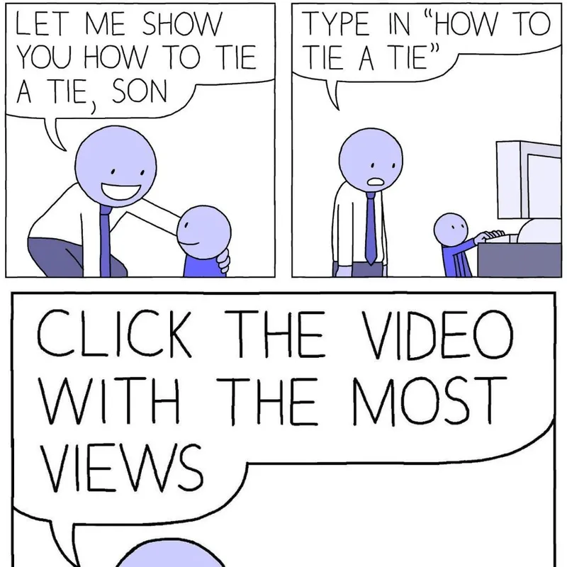 There are certain things in life that seem like every adult just knows. For kids, tying a tie is one of those great, mysterious skills. But this comic pulls back the curtain, showing us that even grown-ups sometimes rely on YouTube to get through life.
