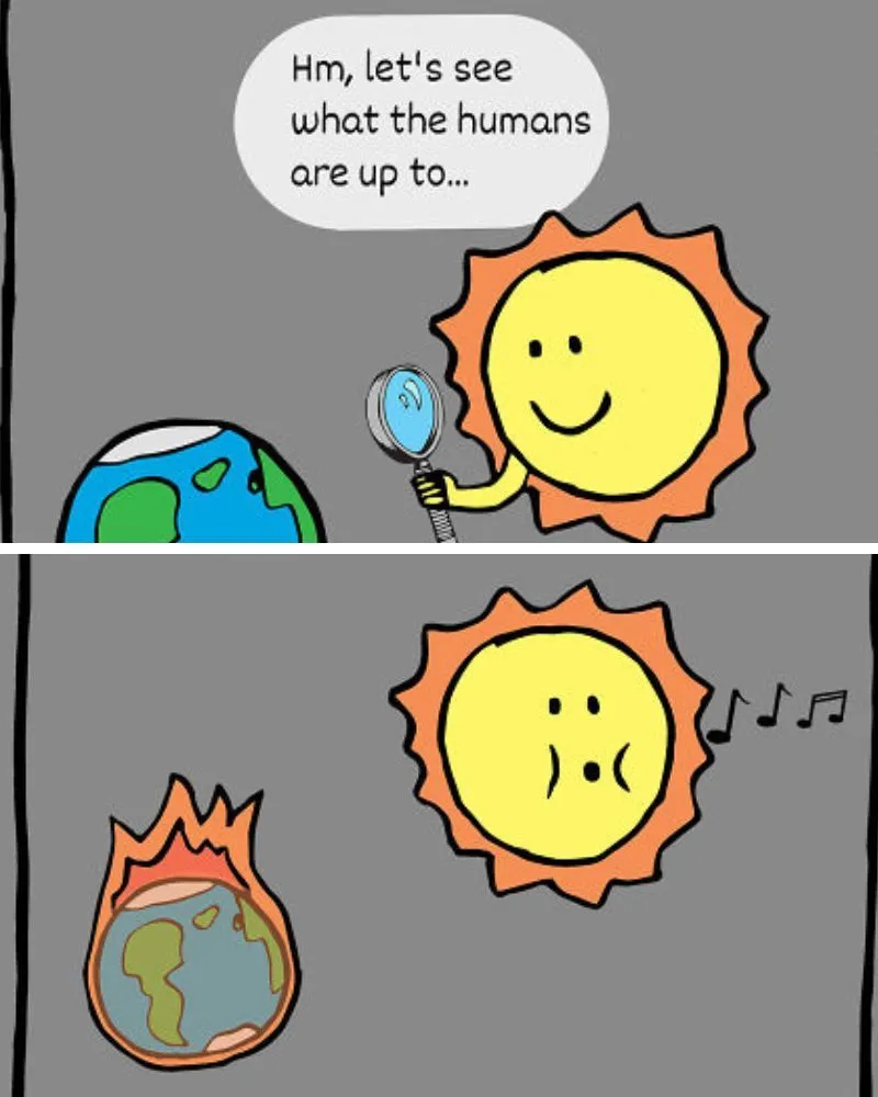 Mike Organisciak brings that idea to life in a funny way, imagining a lonely sun desperate for something—anything—to burn for fun. With a magnifying glass and a bit of boredom, the sun’s antics become oddly relatable. Maybe it’s not a fireball of destruction after all—maybe it’s just really, really bored. This cartoon puts a humorous twist on cosmic loneliness, making you chuckle while also side-eyeing your windowsill.