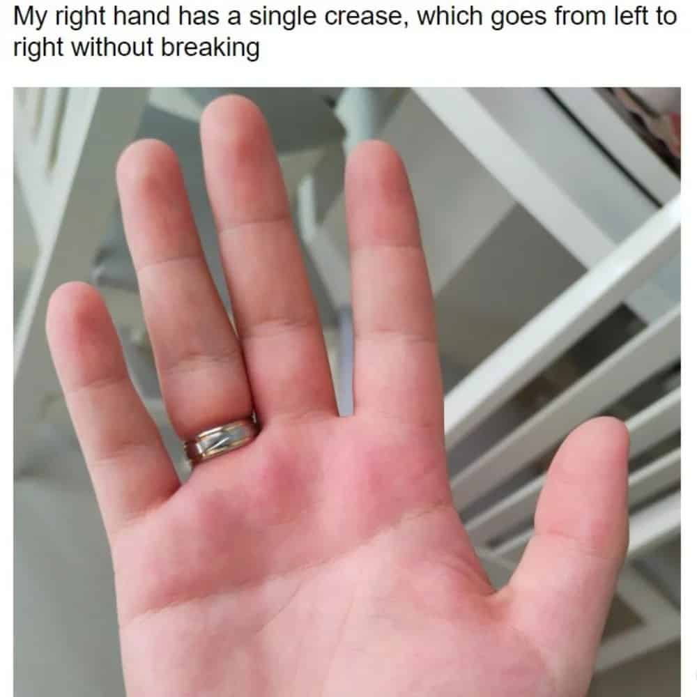 What sets this person apart is that their hand features just a single crease. Unlike the typical hand with multiple lines, this individual’s hand exhibits a distinctive characteristic that might not readily catch the eye of most observers. This subtle yet intriguing feature raises questions about the significance and interpretation of palmistry in their case.