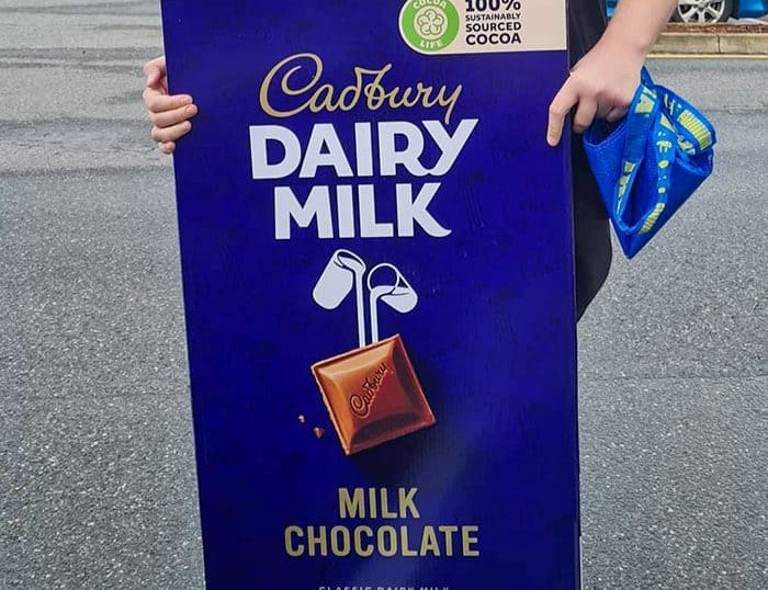 The picture may look simple, but the story behind it is every candy lover’s fantasy. The man in the photo ended up walking away with a colossal twenty two pound Cadbury chocolate bar as his prize. It is the kind of win that feels straight out of a childhood dream. Imagine being handed a block of chocolate so massive it barely fits in your arms.