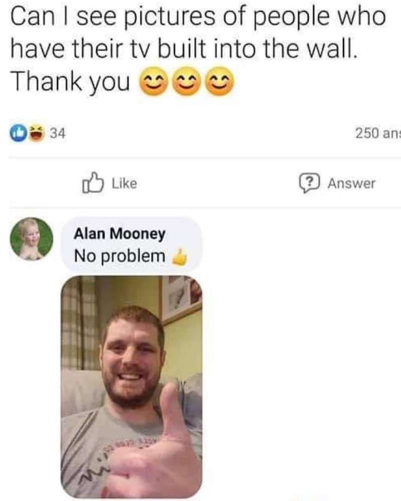 The internet has become an indispensable tool for modern life, providing access to a wealth of information and resources that were once difficult to obtain. With just a few clicks, you can find everything from delicious recipes to DIY projects, home improvement tips to repair how-tos, and much more. In a recent post, an individual demonstrated the power of online communities by asking for help finding “pictures of people who have their TV built into the wall.”
